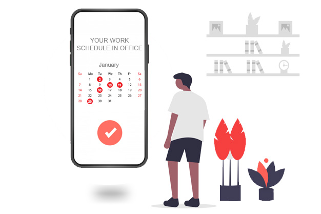 The employee from his mobile app can decide which days and what time slot he wishes to come to office for work and book an office seat. He can choose the office campus close to his home or his parent office. Once booked, confirmation ticket is available on the mobile screen.